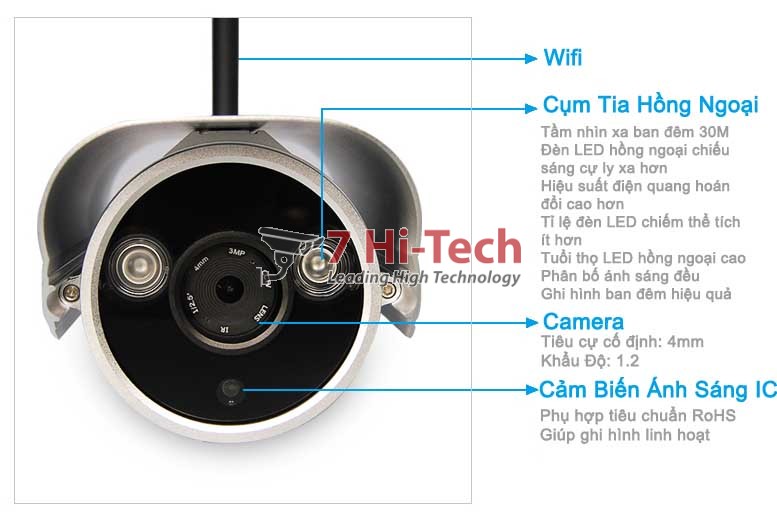 Camera IP Wifi 960P 1.3MP - HT953W 7 Hi-Tech - Camera Quan Sát - Camera IP - Đầu Ghi Camera IP - Máy Bán Hàng - Máy In Nhiệt - Két Đựng Tiền - Máy Chấm Công là một sản phẩm Camera hoàn toàn mới, sở hữu hình dáng gọn gàng , thiết kế linh dộng cho mọi góc quay, cùng những tính năng vượt trội so với các loại Camera thông thường khác, chắc chắn nó sẽ đem lại sự hài lòng cho bạn khi sử dụng mà không phải làm bạn băn khoăn về giá cả của sản phẩm.