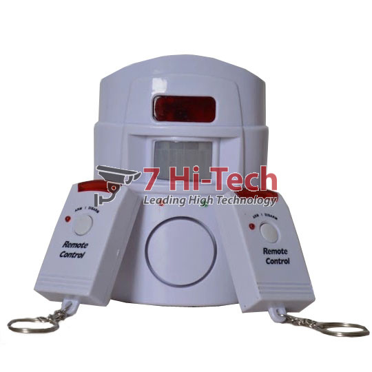 Mô tả: sản phẩm gồm 1 bộ cảm biến phát hiện chuyển động tích hợp còi báo động (trong vùng bảo vệ) dùng pin và 2 remote hồng ngoại có chức năng tắt mở tiếng báo động