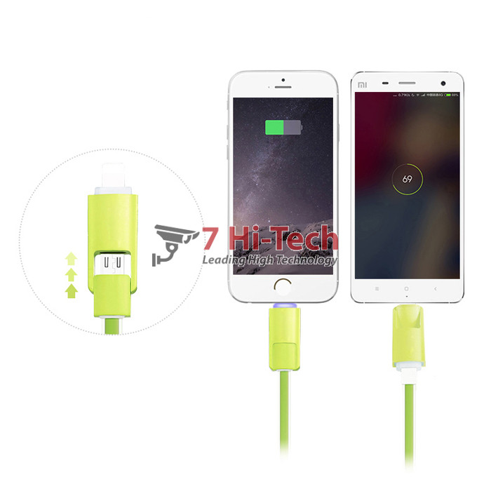 Cáp Sạc 2 Đầu Cổng USB của 7 Gift Shop - Quà Tặng - Quà Lưu Niệm Chiều dài theo tiêu chuẩn quốc tế 1m. Sạc nhanh hơn 70%. Chất liệu bảo vệ môi trường. Hình dẹt sợi phở chống rối. Dùng được 2 đầu cắm cho iOS và Android