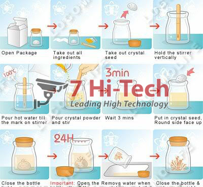 Bước 6: đây là khâu quan trọng nhất để thành công, sau 24h mở nắp lọ ra, để cho hoa pha lê lớn lên dần dần t ừ 8 t ới 14 ng ày đổ bỏ dung dịch đi khi bạn thấy bông hoa của mình đã hết sức “xinh đẹp”.