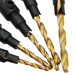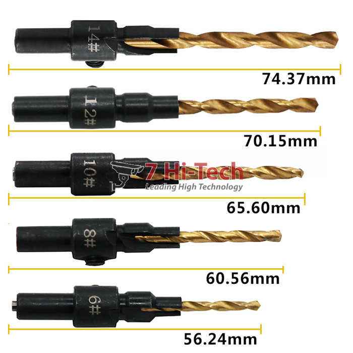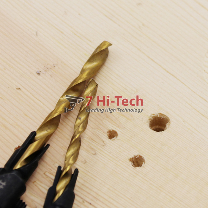 - Bộ 5 mũi khoan 2 tầng 6#-14# hoàn toàn giải quyết bài toán trên. Mũi khoan được làm từ thép gió HSS4241 phủ TiN và thép đen 45 khoan được kim loại mềm như nhôm đồng.