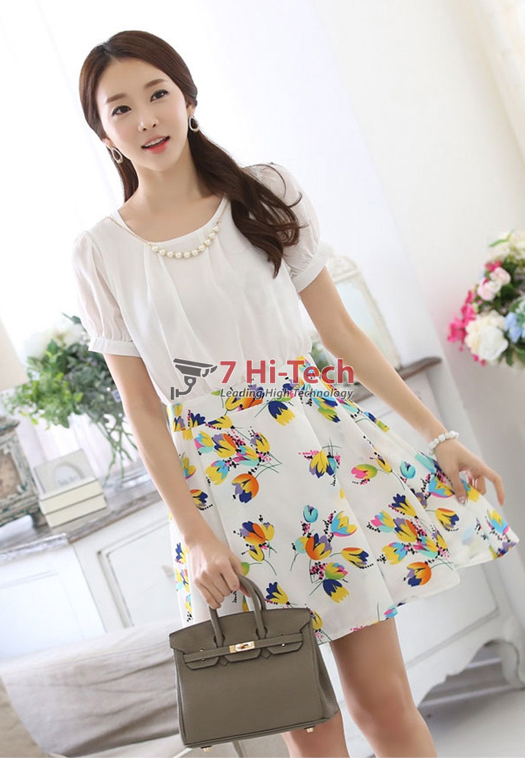 Áo Tay Ngắn Liền Đầm kiểu Hàn J8008 (Vàng)