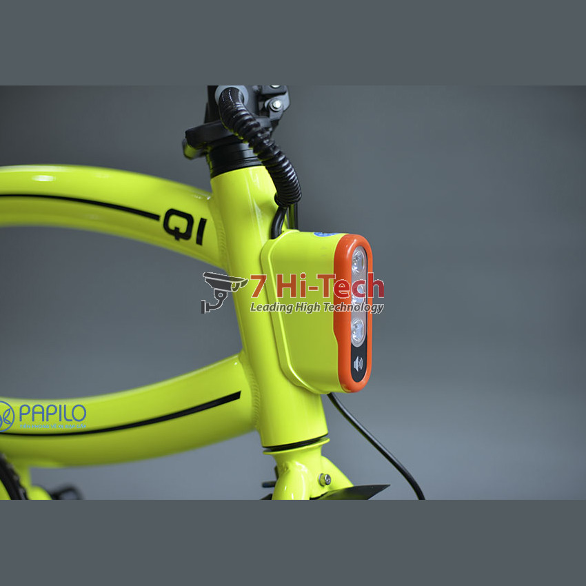 • Xe đạp điện gấp gọn, nhưng vẫn có các chức năng cần thiết cho 1 xe đạp điện đó là phụ kiện: đèn sáng, còi, công tắc khởi động, đèn báo hiệu hiển thị trạng thái pin ngay trên tay lái, rất rõ tầm nhìn khi di chuyển.